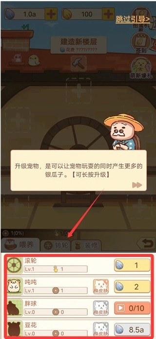 点击跑轮就可以加速金币的获取速度。