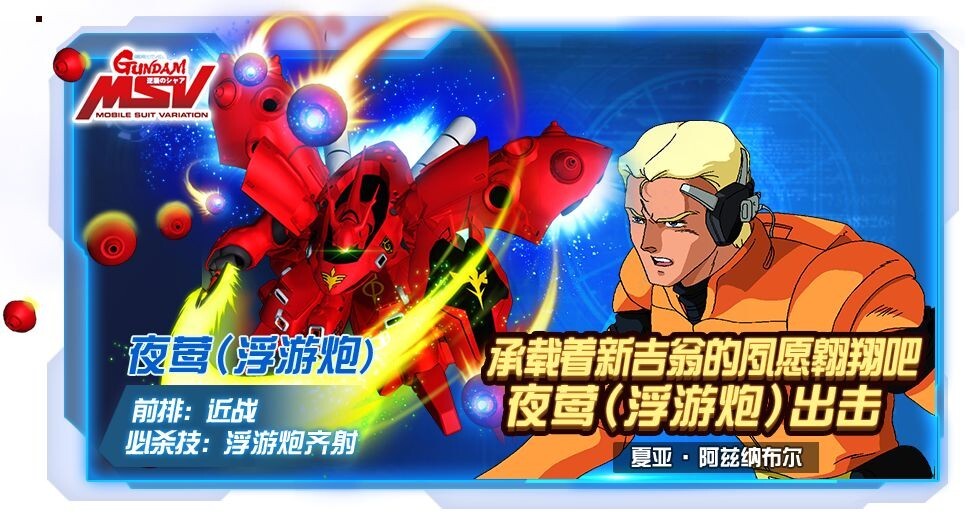 自身防御提升55.0%,技能“大型浮游感应炮”降低的耐久值比例提升至4.2%;与“Hi-ν敢达”同时出战时,攻击频率提升至42%,抗性额外增加44%