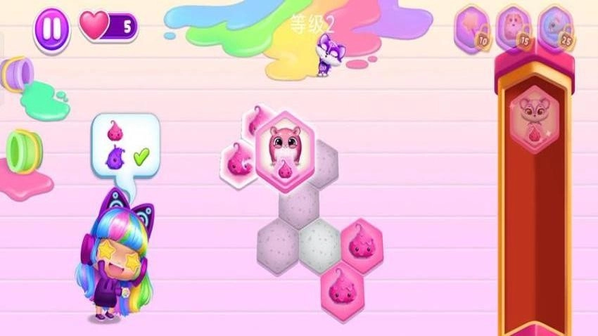 趣味的益智挑战关卡,设计了一系列以宠物为主题的益智小游戏,其中包括了记忆配对、色彩消除等模式玩法。