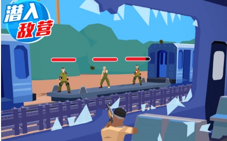 潜入敌营是一个枪战冒险类游戏,寻找各种可以防御的障碍物,然后直接和敌人进行猛烈的射击交战,你的任务就是把所有的敌人消灭完,每关的难度都会不同,战斗前可以装备自己喜欢的武器,游戏的画质是卡通类型的,战斗场景都非常的激烈,玩法也有趣。