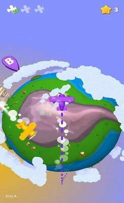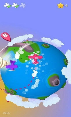 操控黄色飞机顺着轨迹飞行,朝着云层所在的区域进发,努力收集云层周边所有的黄色星星。