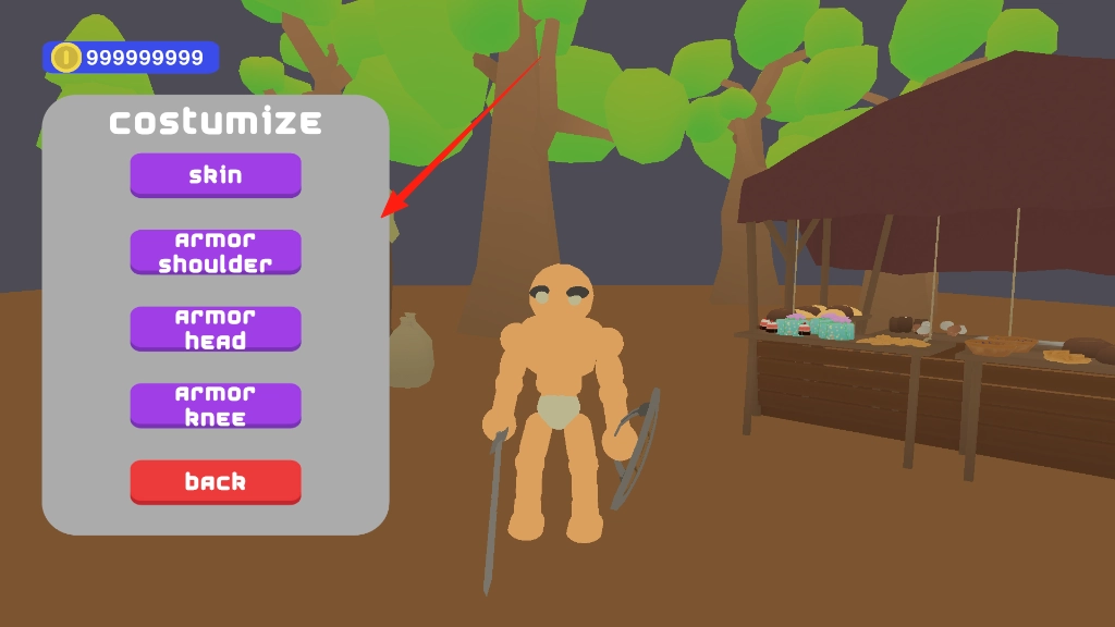 若想更换角色外观,可点击customize进入相关界面,在该界面中能够更换角色的皮肤与装备,从而让角色造型更加酷炫。完成更换后,点击back即可返回,随后就能带着全新造型继续投入战斗。