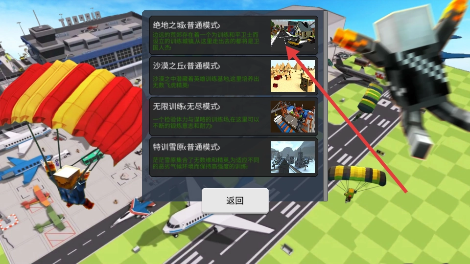 在选择航线后确定跳伞时机,长按屏幕可调整俯冲角度以加快下落速度。