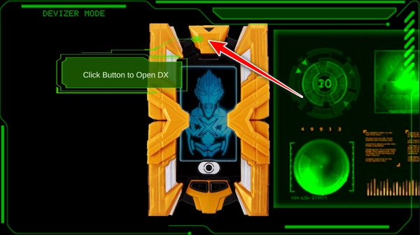 7、然后就可以插入艾克斯奥特曼卡牌了,选择第一张艾克斯奥特曼卡牌,大喊“艾克斯前辈!请把力量借给我吧!”
