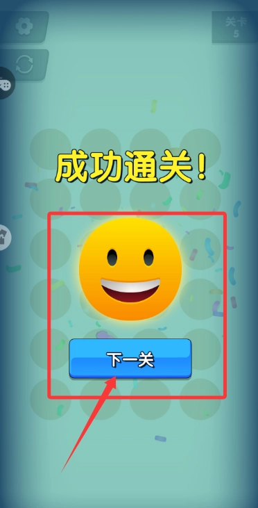 成功通过当前关卡后,点击图中所示的按钮,就能进入下一关继续游戏。