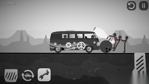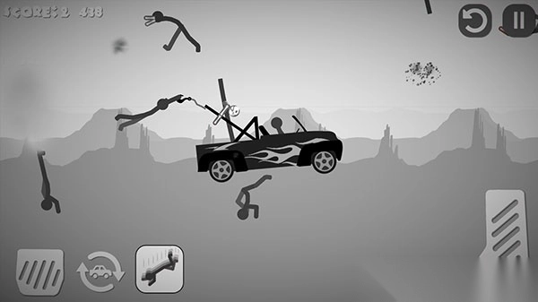 游戏过程里,通过刹车和油门来操控车辆的方向与速度,精准地撞击火柴人,当车辆翻转时,点击重置按钮就能继续游戏。