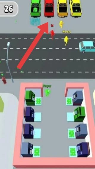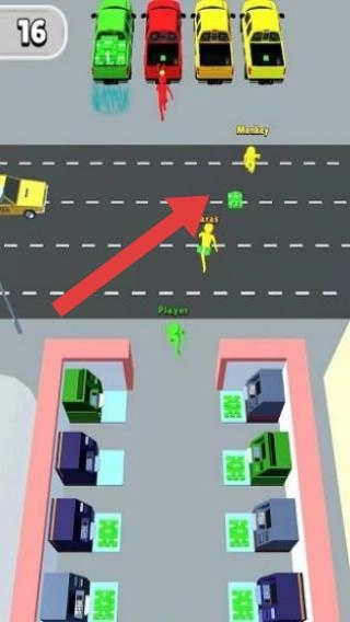 不同颜色的小人(分别代表玩家与其他阵营)、车辆以及建筑设施,共同呈现出多人在城市道路场景里,借助吞噬等手段来壮大己方人群的玩法特点。