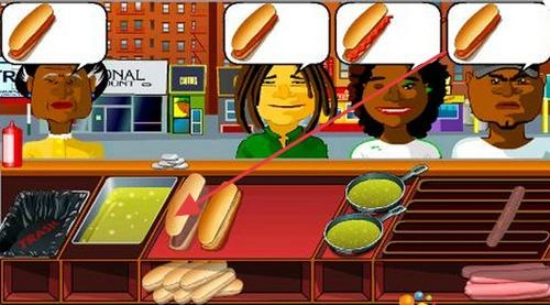 先进行“订单辨识”!仔细查看顾客头顶显示的热狗需求样式,通过3个步骤把订单内容记清楚,千万不要搞错制作要求,每正确完成1单都很关键。