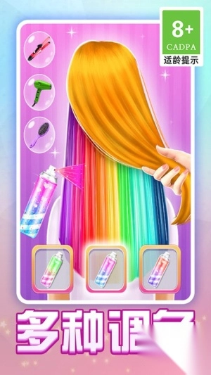 游戏20余种专业美发工具,涵盖梳子、卷发棒、直发器等品类,高度还原真实美发沙龙的操作流程与细节,让玩家沉浸式体验专业级美发带来的乐趣。