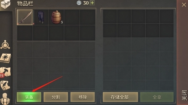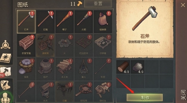 8、有了更多的资源,就可以制作更多的工具;当制作好新的工具后,点击左下角最下面那个按钮就可以装备上;
