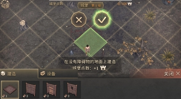 13、注意:要在没有障碍物的地面上进行建造哦~选择好之后,点击“√”;