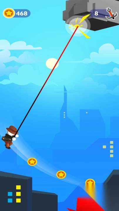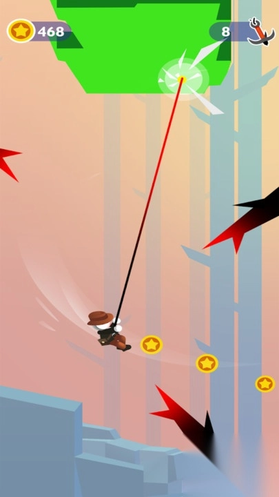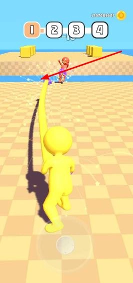 当遇到远处的目标时,长按屏幕让肢体蓄力拉伸,松开后借助吊钩完成抓取;若要应对敌人,则需快速划动屏幕出拳攻击,不断消耗其血量直至将其击败,随后收集掉落的金币和各类道具。