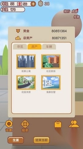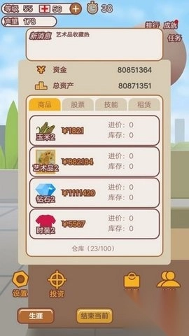 成长系统的规则如下:玩家通过积累利润来获取经验值,从而提升等级;等级提升后,能够解锁新的建筑和人生技能。基础升级项目可以用金币购买,而高级技能和加速成长功能则需要消耗钻石。此外,玩家还可以通过观看广告,免费获得随机资源。
