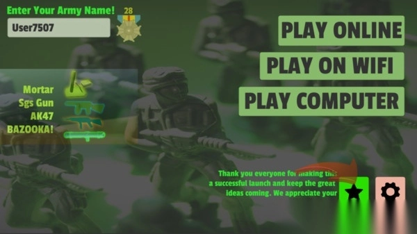 玩具军人巧妙融合了童趣满满的玩具世界与热血沸腾的对战元素,为玩家带来满是童年回忆的策略指挥体验。在这里,你将化身为玩具军团的指挥官,在精致细腻的3D场景里开启紧张刺激的射击大战。你可以解锁种类丰富的装备来武装自己的部队,率领不同类型的玩具士兵去应对各种各样的关卡挑战。在高度还原经典玩具对战氛围的同时,尽情感受策略部署与实时操控带来的双重乐趣,亲身体验指挥千军万马、最终赢得胜利的满满成就感。