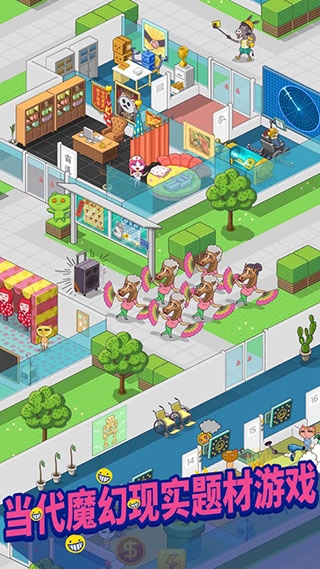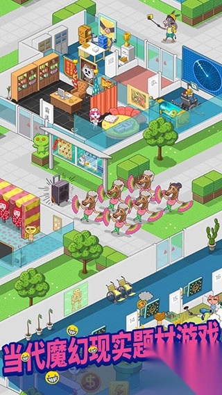 和多数经营游戏的逻辑类似,你需要通过升级诊室设备、摆放绿植、播放背景音乐等方式提升病人满意度;满意度越高,治疗时间就越短,收益自然也会跟着涨。除此之外,游戏里还藏着不少神秘道具和隐藏剧情,更有超多玩梗彩蛋等着你来发掘,保证能让你笑到停不下来!现在就开始扩建你的医院,带着它一步步登上行业巅峰吧!值得一提的是,在《超脱力医院》这款游戏里,你能看到不少设计看似离谱却暗含隐喻的造型——比如在门前迎风狂舞的吉祥物、对着片子“狂撸”的斯文狼,还有洗剪吹风格的箱猫三人组。游戏的整体画面风格给人干净整洁的印象,即便精神病人来来往往,场景也显得十分热闹。作为一款经营养成类游戏,它自然有着完善的经营养成体系和玩法,其中医生的招募与培训正是核心养成内容。此外,游戏采用2D卡通风格呈现画面,清晰度高且色调搭配和谐,能让玩家获得舒适的视觉体验。音乐方面的表现也颇为有趣,鬼畜风格的电音BGM与无厘头的画面高度契合,进一步凸显了游戏的趣味特质。感兴趣的小伙伴还在等什么?快来体验一番吧!