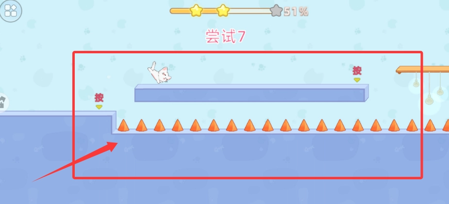 控制小猫跳过尖刺的区域,安全抵达地带。