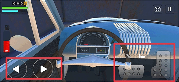5、上车后就能驾驶车辆在道路上行驶了,左边的按键用来控制方向,右边的按键则分别负责倒车和前进。