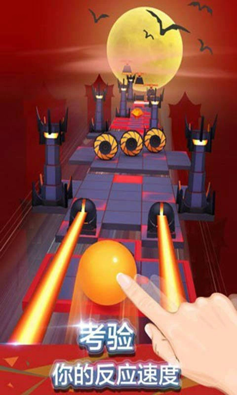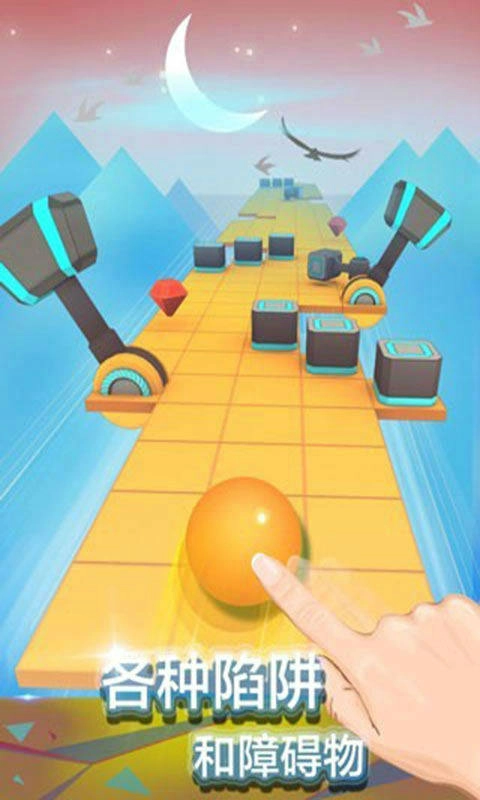 1、通过左右移动手机屏幕控制球球的移动,弹跳到不同位置,最终躲避障碍物。