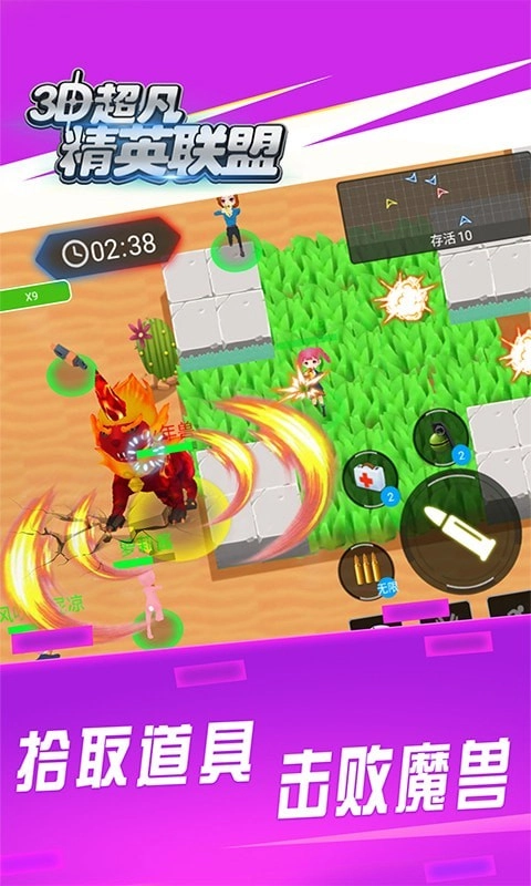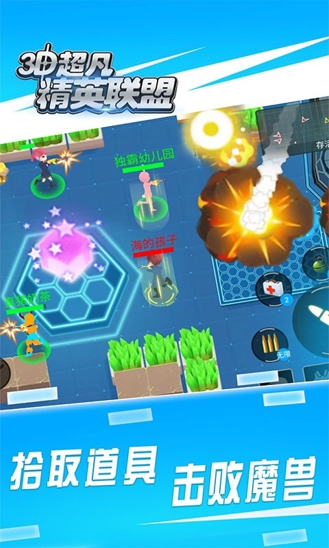 3D超凡精英联盟年度推出的全民最强吃鸡游戏,运用第三人称视角,让玩家尽情体验科幻飞机跳伞后,单人枪战与团队对抗交织的荒野激战模式,其中更有狂暴凶猛的麒麟魔怪兽现身。