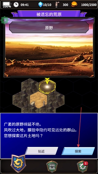 当土地模块存在遗迹或其他事件时,系统会弹出提示窗口,点击“贴近”按钮即可进入剧情环节。