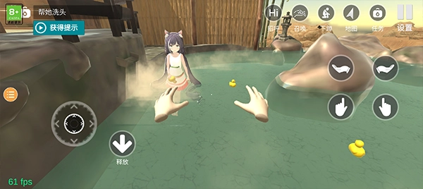 5、待小忍进入浴缸后,你即可进入卫生间为她洗头。按照指示轻拍她的头部来完成沐浴流程,气泡计会依据你们的互动进度逐步增长。