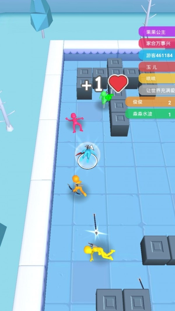 玩家控制1个弓箭手,与场地内的其他弓箭手对射。左右划动可控制角色移动,停止移动后就会自动射击,每消灭一个敌人会恢复1点生命,当生命值为0时游戏失败。场景里还有多种机关,需要注意躲避。倒计时结束前,消灭所有敌人就会获得胜利,奖励星星后会提升段位,再次游戏时会匹配更厉害的敌人。