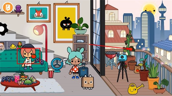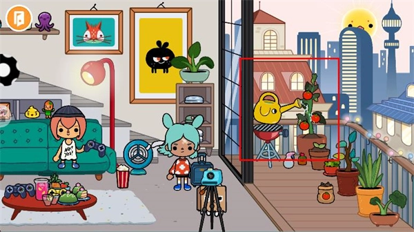 房间里的角色、物品和各个区域都可以互动。点击蓝发角色,他们会跳上沙发;点击床铺,角色就会躺下来休息;点击阳台的植株,还能收获番茄。你可以按照自己的节奏慢慢探索,尽情享受互动的乐趣。