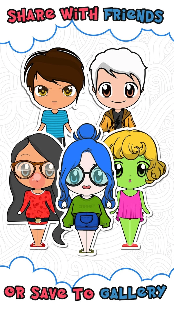 5、保存表情符号发送给你的朋友。令人惊叹的华丽洋娃娃和卡通作品轻拍你的手指。