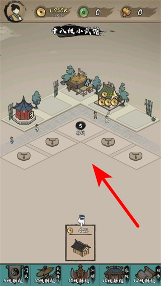 在武馆的经营界面里,摆放不同等级的武馆建筑,就能持续获得铜钱之类的收益,进而推动武馆升级和规模拓展。