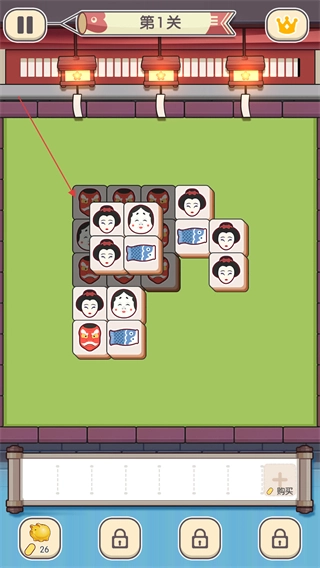 请注意,下方带有黑色阴影的方块是无法点击的,需要先消除其上方的方块才能将其解锁。