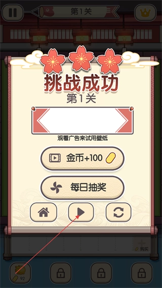 把场上的方块全部消除就能完成关卡挑战,点击下方的三角按钮就能直接进入下一关。