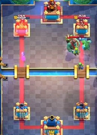 2、在这套卡组里,滚木通常是作为防守辅助来使用的。由于矿工往往会直接钻到防御塔脚下,滚木那种能秒杀低生命值单位的绝佳辅助作用,就不太容易发挥出来了。