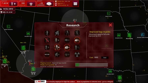 4.科技研究:投入资源进行科技研究,解锁新的技能和科技,提升僵尸的攻击力和生存能力。