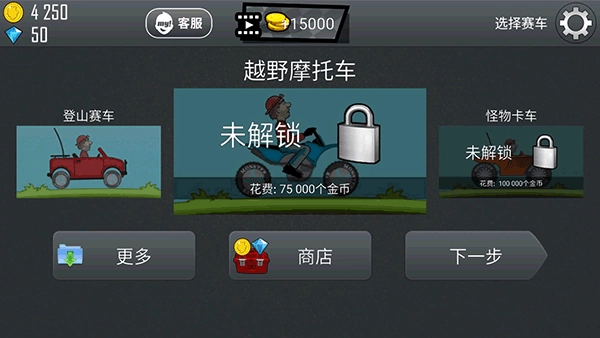 当然你得提升越野摩托车本身的各种性能,中间有兴趣可以解锁其他场景,沙漠,北极,高速公路。