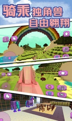 2、与你的独角兽冒险,采取不同的水平,精心设计,像素游戏风格,玩家可以在这里体验冒险竞赛和创造建筑的多样乐趣;