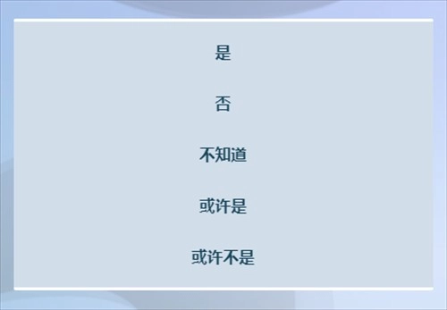 2、所有提问都只需从固定的五个回答里挑选,这五个回答分别是是、否、不知道、或许是、或许不是。