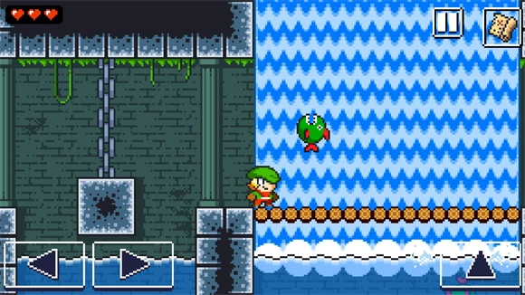 2、正式开始后左边控制角色的前进,右边是跳跃,遇到怪物和陷阱可以跳跃躲避。