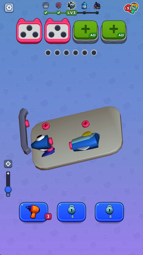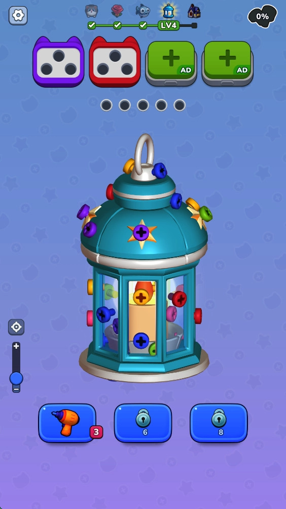 玩家能感受到极强的沉浸式3D视觉体验,精细的螺丝模型仿佛把人带入真实的操作场景。每一关都经过巧妙设计,兼具趣味性与挑战性,让玩家在游戏里持续获得动力。游戏操作简单易上手,玩家通过滑动和点击就能完成任务,适合不同类型的玩家。随着游戏推进,玩家会遇到更复杂的谜题和丰富的玩法,这让游戏既有可玩性又充满乐趣,让人沉浸其中无法自拔。