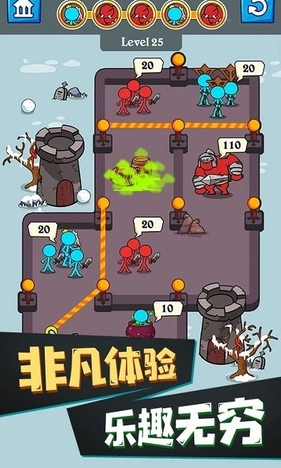 2.丰富的关卡设计:游戏关卡设计巧妙,每个关卡都有不同的挑战和难度。从简单的起点开始,玩家需要逐步解锁更高级别的关卡,面对更强大的敌人和更复杂的场景。