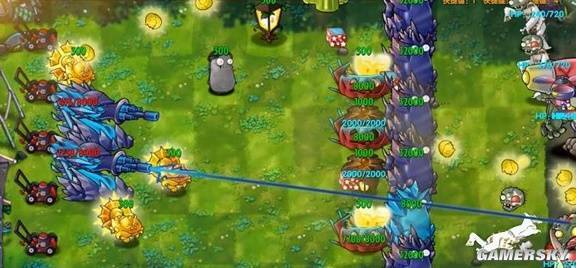 17、究极激光炮台:究极机枪炮台亚种,使用狙击和豌豆和究极机枪炮台切换,每轮射击扣血500,最低500血,血越少伤害越高,最高为6倍伤害。