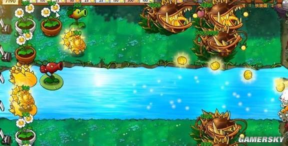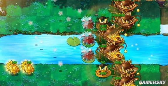 21、太阳能睡莲:只能在旅行模式中使用,当陆地地图切换为泳池地图时,太阳能花盆会自动变换为太阳能睡莲,每(当前阳光/1000)秒,生产50阳光和100金钱,最少3秒,最多15秒。