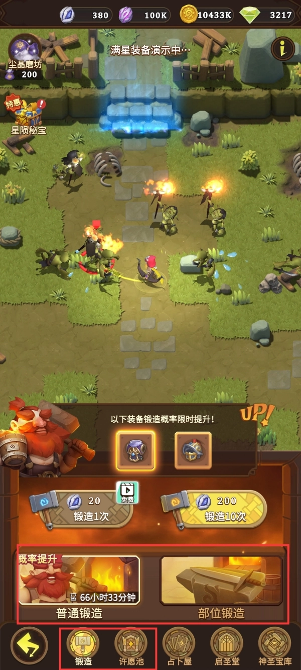 2.抽取:在【锻造】中抽取,也可以获得各类冒险装备,还可以定向抽取特定部位的装备;【许愿池】中可抽取职业套装装备。