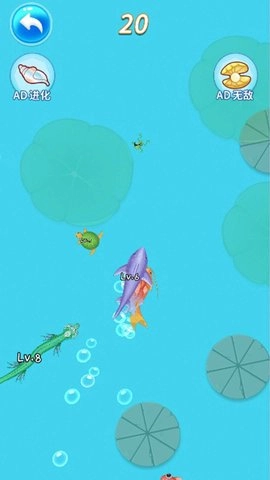 游戏的玩法简单而有趣,玩家需要不断收集各种资源,如水晶、金币等,然后利用这些资源进行合成。通过不断的合成,玩家可以将小蝌蚪逐渐进化成为更加强大的生物,如小青蛙、小乌龟、小鲤鱼、锦鲤、大鲨鱼等。每次合成都会让角色变得更加强大,同时也会给玩家带来成就感和满足感。