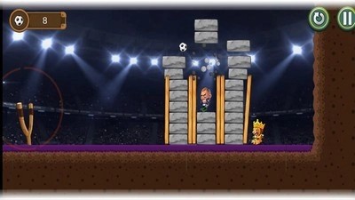 愤怒足球的玩法和愤怒的小鸟相近,玩家得借助弹弓弹射足球,只要把足球送到球员脚下就算完成任务。游戏里有各式各样的关卡供玩家体验,而且每个关卡都会设置不同的障碍,阻碍玩家成功把足球送进去。