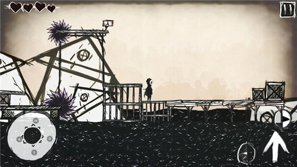 4、广阔世界黑白画风,手绘的画风带有惊悚的画面,并且陷阱机关众多还有怪物挑战性十足