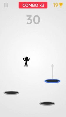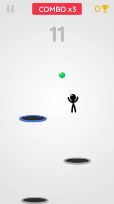 这是一款火柴人题材的跳跃类,《火柴人跳洞》游戏的玩法非常简单,游戏中的黑洞就是蹦床,而玩家需要通过控制火柴人在各个蹦床之间跳跃,千万不要掉下去哦!