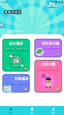 多多闯关乐是一款备受热爱的休闲答题类游戏,其操作简单直观,画面效果华丽,为玩家带来畅快游戏体验。玩家在游戏中可以通过不断闯关获得各种道具、武器和装备,同时还能获得点卷来收集丰富的游戏内容。不论是在闲暇时光还是在休息间隙,玩家都可以通过游戏进行益智挑战,锻炼大脑,享受游戏乐趣。