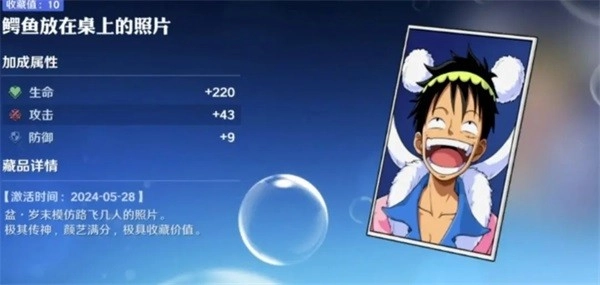 这个藏品在主线剧情里有登场,它把原作里的搞笑桥段融入到了游戏剧情相关的藏品设定中,而且该藏品还能提升角色的“生命”“攻击”和“防御”属性。想要获得它的话,需要通过主线剧情13-1关卡,进入关卡后直接往左边走,在左侧的桌子上就能拾取到。