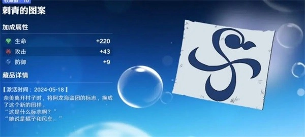 每次看到娜美胳膊上的刺青,心里总是百感交集。动画里她用小刀在自己胳膊上刺青的那一幕,每回重温都忍不住鼻酸落泪。不得不承认,魔方在藏品的选择上确实很有眼光。这个藏品的获取条件是:将可爱小鸭号升级到30级。