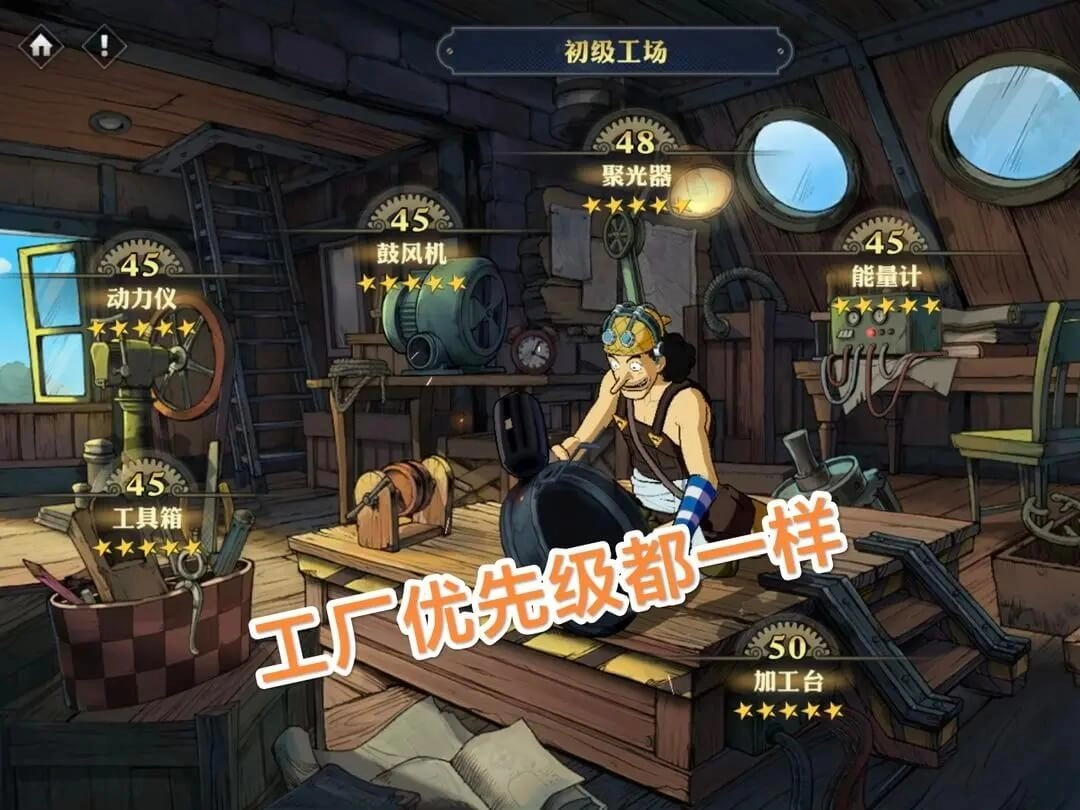 工厂里的这些设施没有优先级之分,升级带来的提升效果都一样;不过等级越高,所需消耗的材料和体力就越多。因此建议把每个板块的等级都调整到相近水平,这样性价比是最高的。